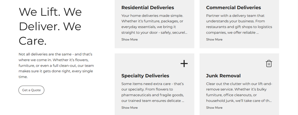 In the delivery and logistics space, customers make quick decisions based on trust and clarity. Lift & Deliver needed a website that removed friction and clearly explained services without overwhelming visitors.